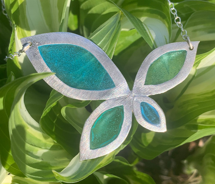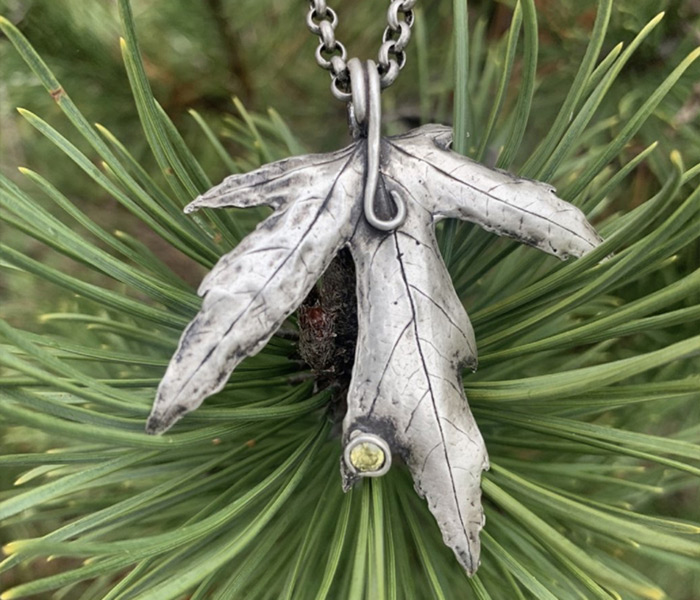 My primary medium is silver metal clay. Simply, metal clay is fine silver particles suspended in an organic binder and water. Like in pottery, it can be formed, textured and fired leaving the original form in pure or sterling silver. I was drawn to its versatility because it allows me the flexibility to translate the many depths of the outdoors into wearable dimensional sculpture. Whether painting it on leaves found out in the woods, using it in a syringe to hand draw flowers and other natural elements or sculpting shadow boxes to hold gemstones, metal clay allows for my free-flowing style. Finally, my signature scratched matte finish makes the silver look both soft and unique – organic and upscale with a touch of bohemian. True beauty is being unapologetically you and I want women to celebrate this and be comfortable wearing my unique designs knowing they evoke a feeling of warmth and empowerment.