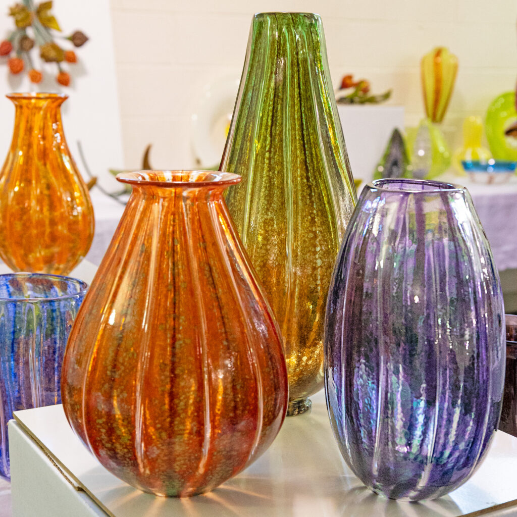 The glass section includes WheatonArts’ seconds and overstocks, along with original works made by the WheatonArts’ Glass Studio Artists Patty Clune, Moss Collins, Jeremy Hayes, Tiff Leps, Josh Metzger, Katey Murphy, and Ish Rodriguez.