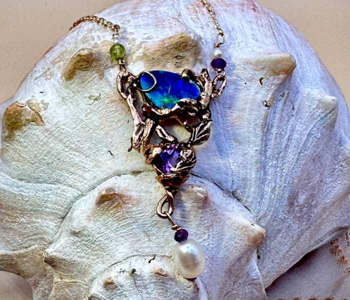 Artist Statement: My life work of 55 years has always been about our spirituality and the feminine as well as the metamorphosis of a person. I’ve always worked to provoke conscious thought of our struggles and dualities we endure. Always touching our youthful soul for the energy and spirit of the divine within. I’ve been graced with always trying to work with faith, hope, even through our darkest times. To find the light, the connection of who we are in our strength as spiritual warriors to empower us forward. Each of the artworks, be it jewelry, sculpture, oil paintings, or oil pastels, represents all of the elements encompassing our life struggles and the power within.