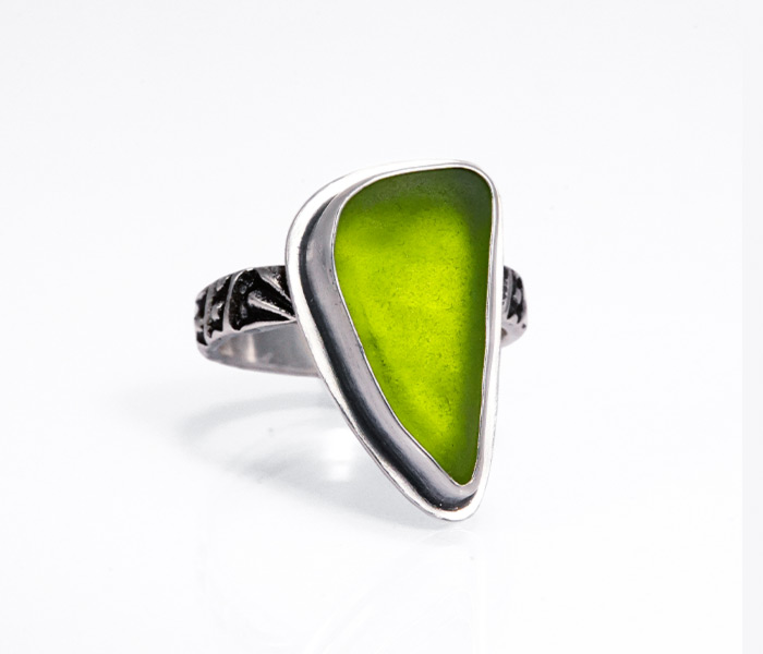 As a lapidary artist, I cut many of the stones I use, collaborating with the raw materials to reveal their unique character. My stones range from semi-precious gems to found materials like slag glass, sea glass, and beach-worn treasures. I work primarily in sterling silver, using it as a structural element to frame each stone or object in a way that feels both ancient and modern.