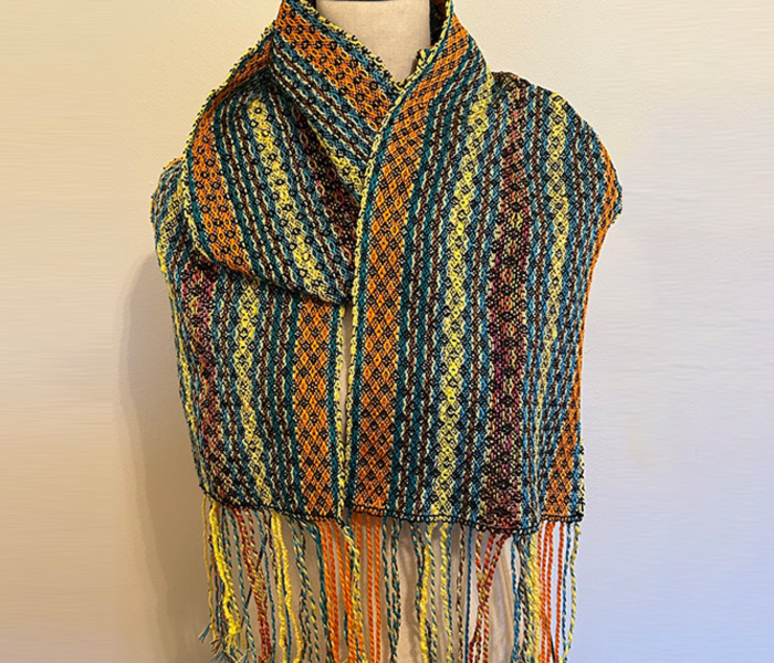 To this end, my goal is the creation of textiles for yourself and your home in the form of scarves, hand towels, placemats, table runners, etc. They are unique in that I like to experiment with new weave structures and new color ways. The result is a merging of form and function into an array of textiles for use for you and your home.
