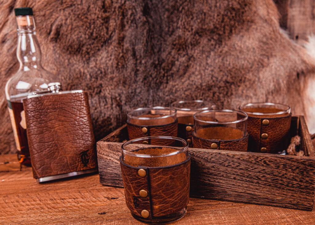 Hi my name is Jesse Serra. I am a local leather worker from Vineland. I’ve sold at craft shows for several years. Last year was my first full-time year! I first picked up leathercraft as a hobby and then very quickly became obsessed with it. Once I became proficient enough sell wallets at my first show, I began to see Just how diverse my work can become. I have more of a masculine style with my leather work which made me stand out in lots of craft shows because there aren’t a lot of things for men to buy. I have several different styles of wallet designs, fun! Personalized whiskey glasses and flasks made out of bison and accessories.